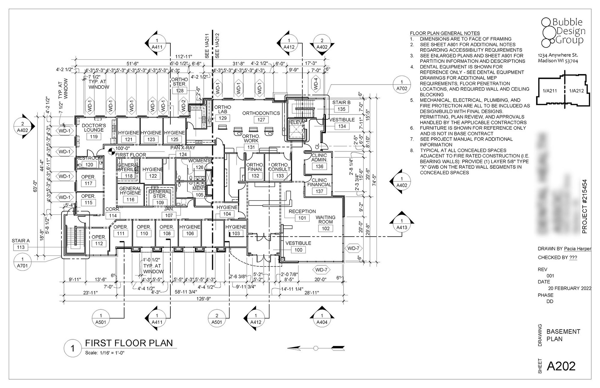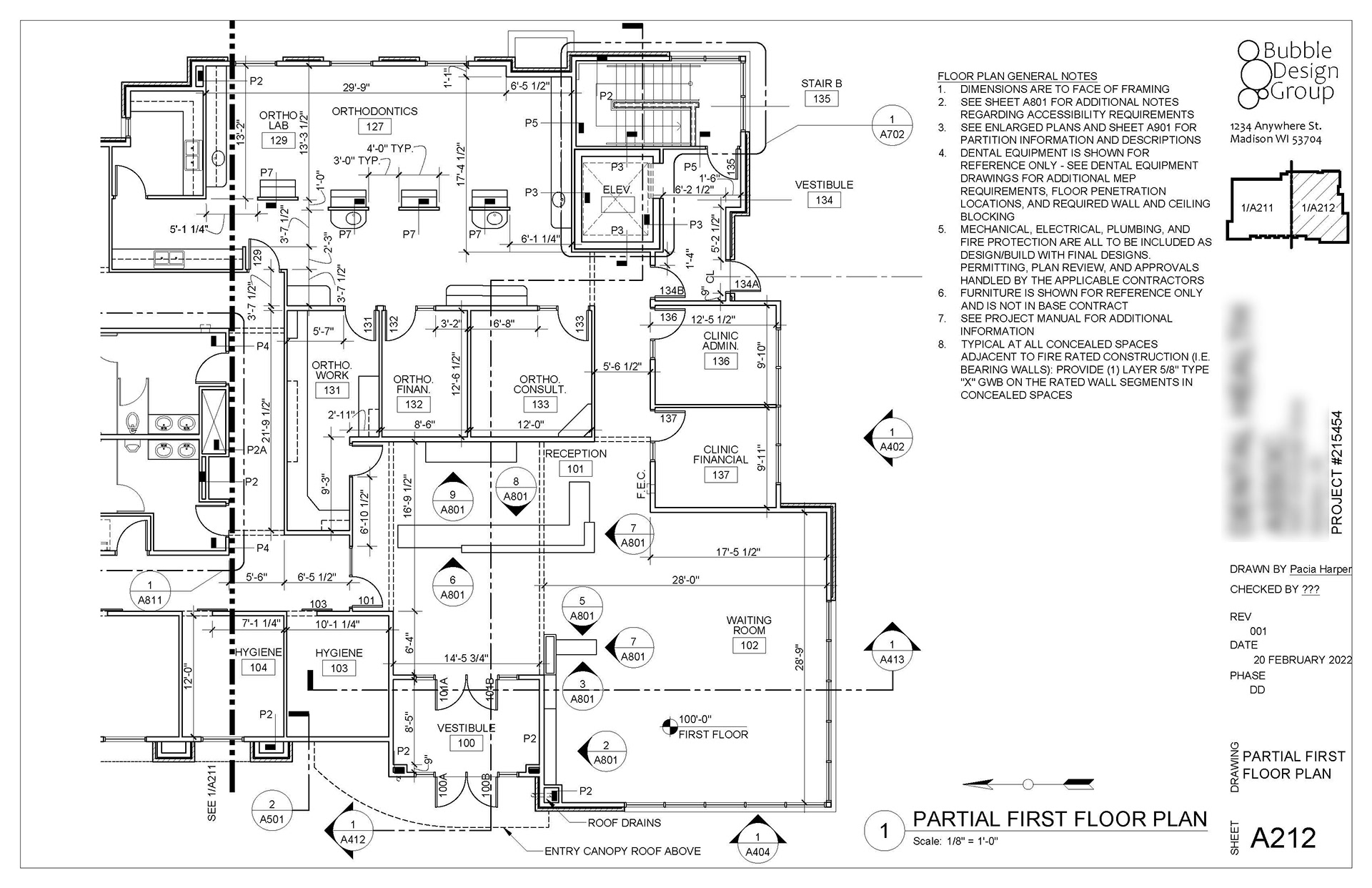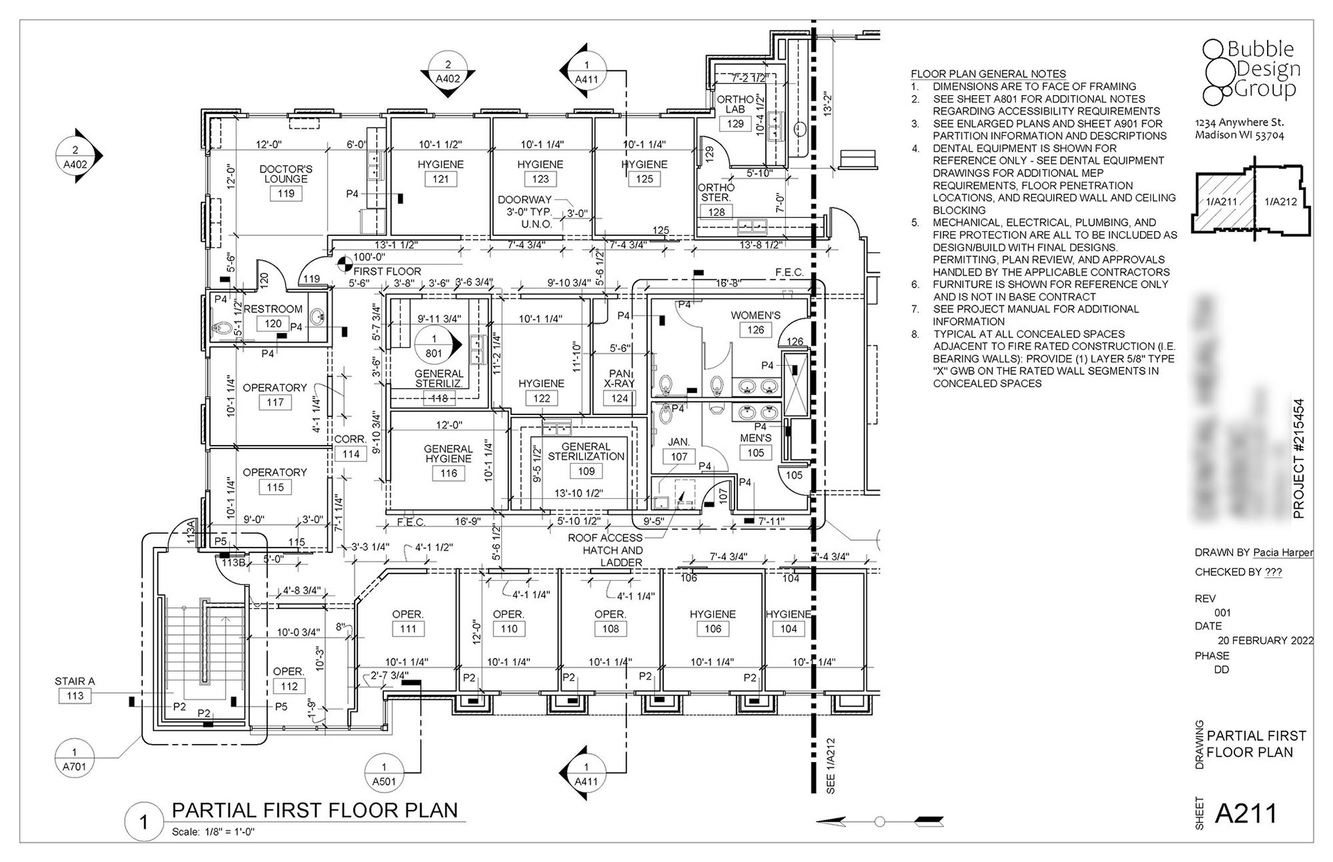 Construction documents for a dental office, in AutoCAD. I did not design the building.